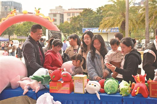 - “策马运河迎新春 畅购钦州好年货”新春消费季系列活动现场,市民购买毛绒玩具。连信友/摄