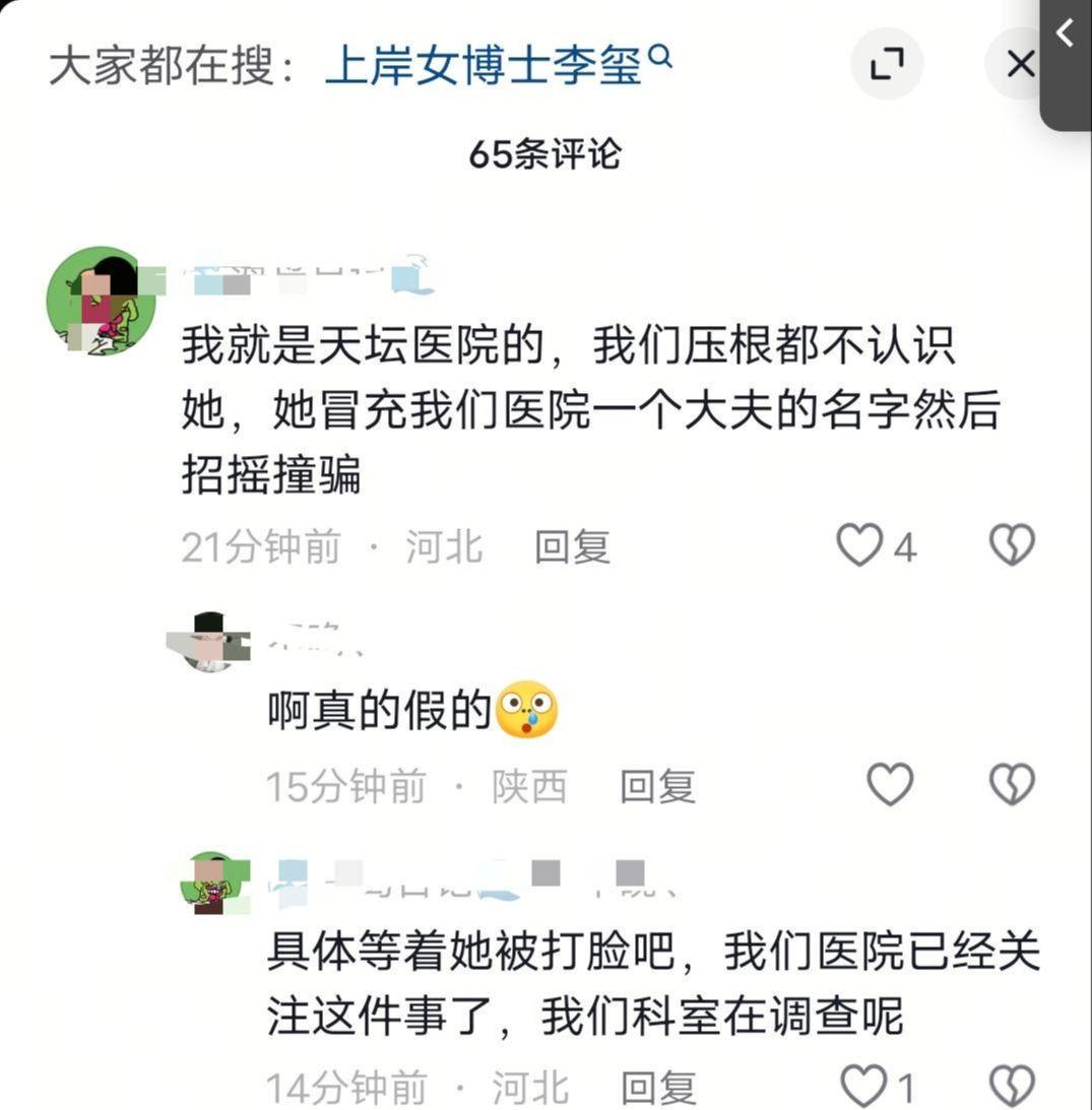 有人在某书爆料她早就开始行骗了,在各种硕博群里伪装身份,盗用别人的科研成果编造自己的光辉履历。